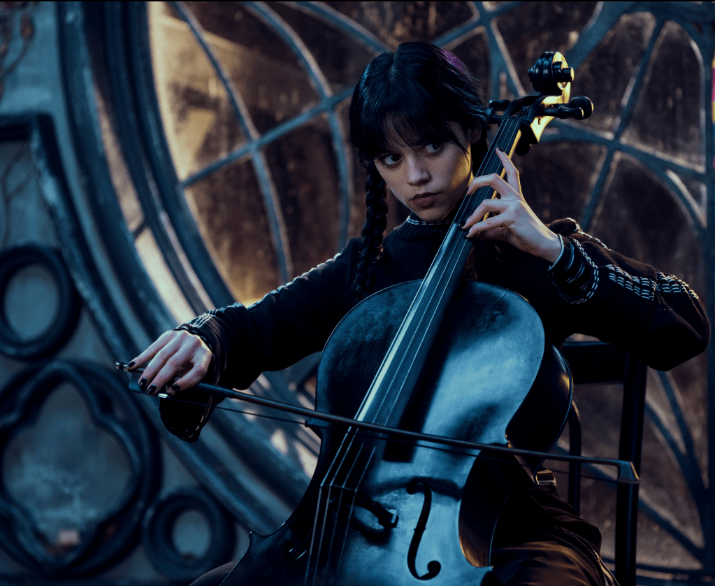 (Edgar Allan Poe was one of their best students.) The first two episodes were directed by Tim Burton, and Wednesday is played by Jenna Ortega. An absolute delight, from the double bass playing on a rooftop to the secret societies on campus…
