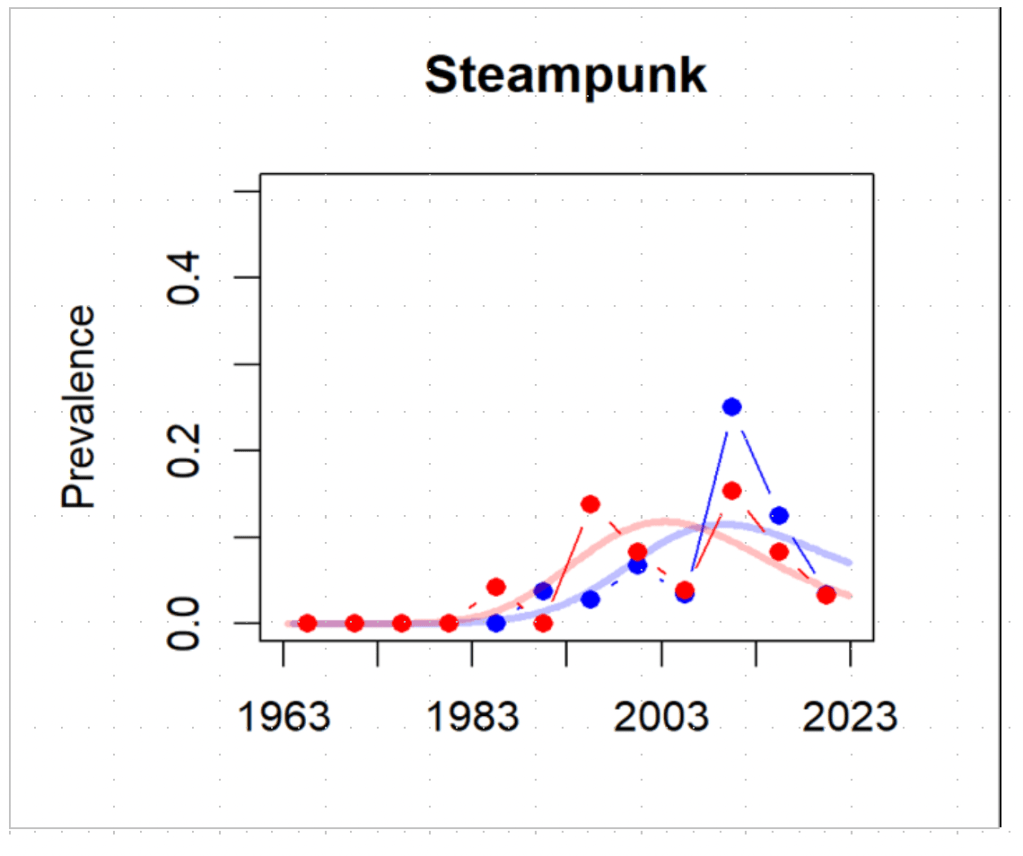 - 1970s spike = 2001 Space Odyssey, Slaughterhouse 5?